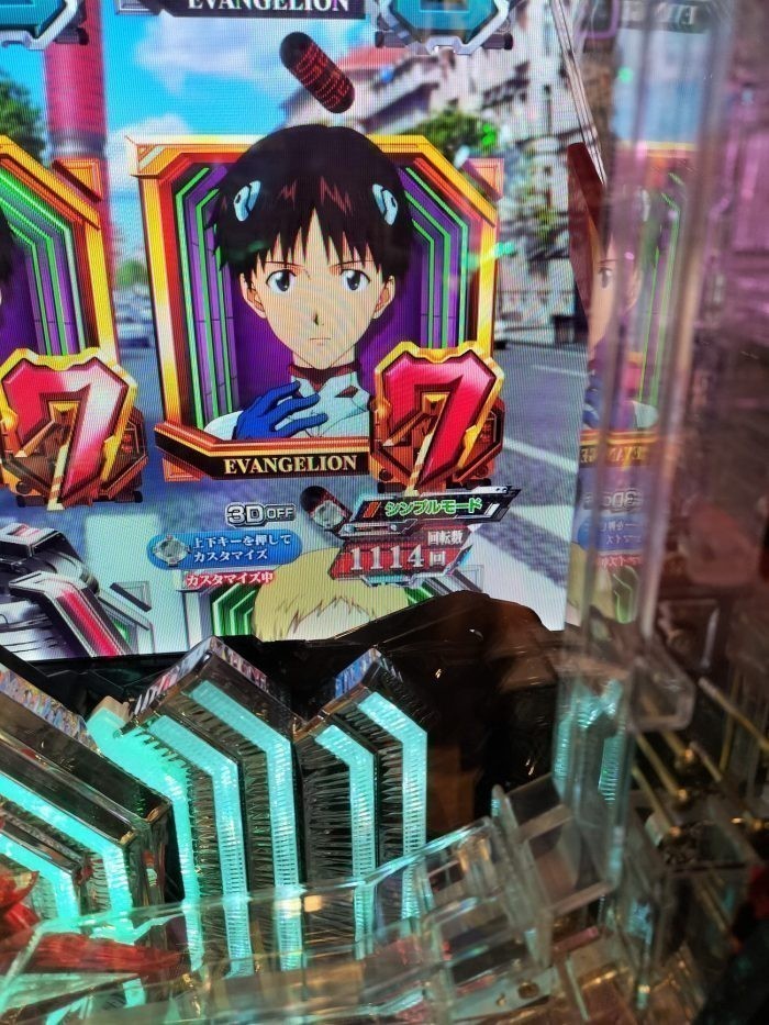 以下の画像は花の慶事4500発は中野グランパで打った際のもの1201回転当たらず、エバは吉祥寺メッセで打った際のもの1114回転当たらずだが、どちらも200回転ぐらいから、【この台すぐに当たるだろ!】なんて気軽に打ち始め、最後の最後まで粘ったけど、心が折れてしまい、最後は妙に落ち着いた感じで、【記念に撮影でもしていくか!】と撮った画像だ(普段はガチに涙目になるので、それを隠して席を立っている)