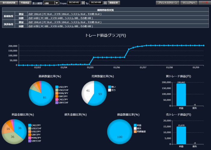 1月2日~7日までのFXですが、この週はいつもの1/10くらいしか取引しませんでした。