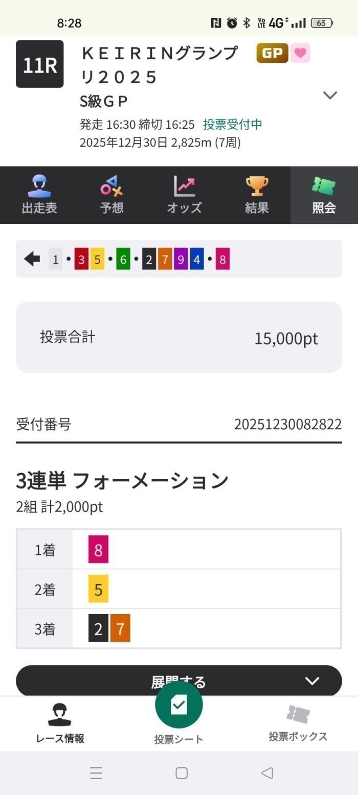 競輪グランプリの買い目は、8→5→2と7