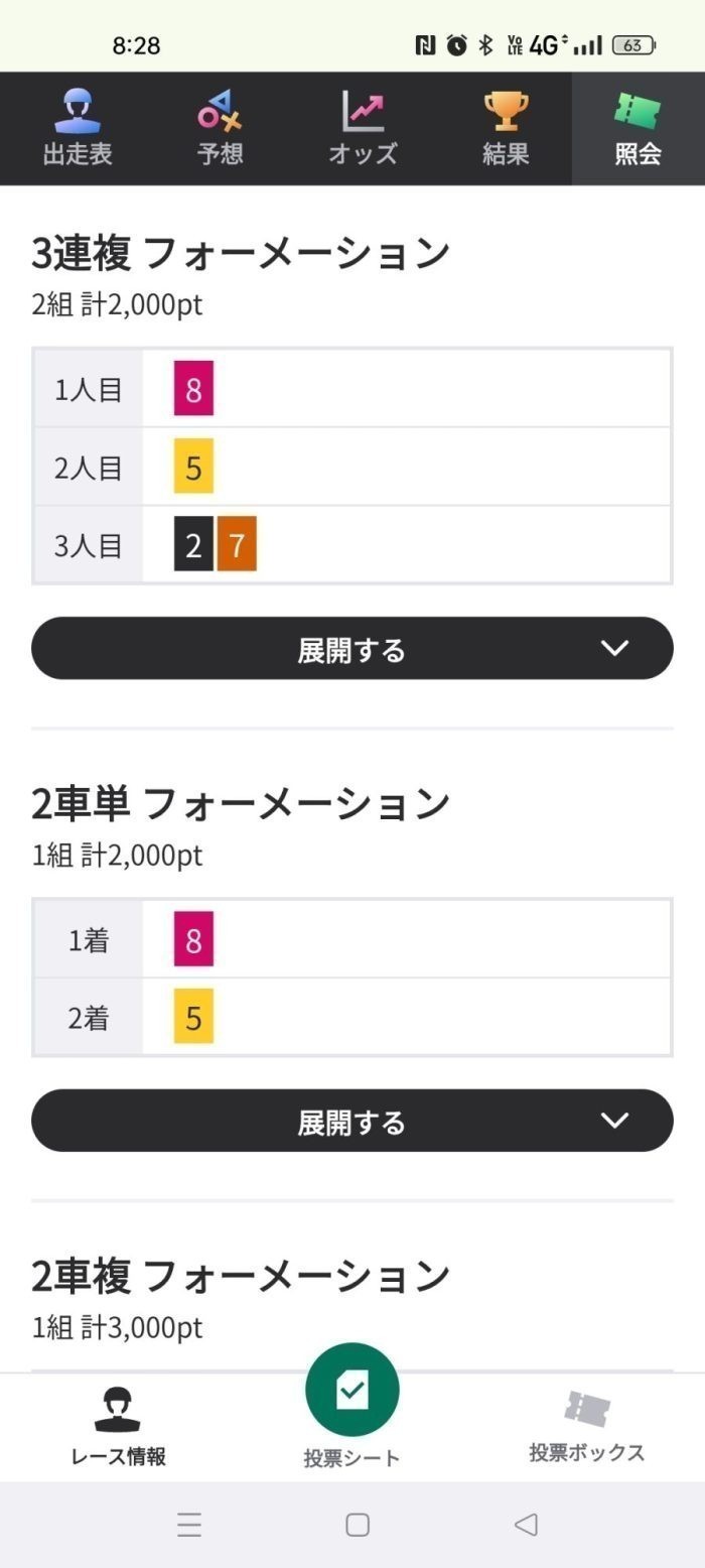 二車複 8→5を3k