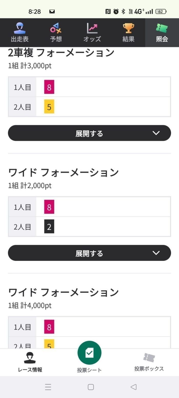 また今回この4文字で出てきた選手の車番は、8,5,2,4。なので枠の6=4で買えば両方押さえることができるものの、割と人気になりそうなので、その場合は、8から5,4と流す可能性もあります。