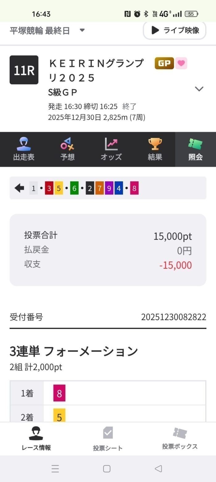 競輪グランプリ2025の実際の買い目